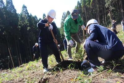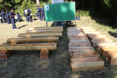 プランター・ベンチ・看板を作る班と、植樹班に分かれて作業し、生徒たちは一生懸命に取り組んでいました。