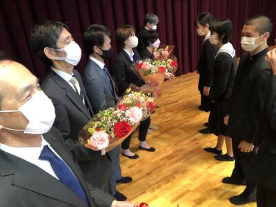 私は式辞で高校生活の3分の2がコロナ禍での生活を余儀なくされ、できなかったことも数多く不完全燃焼な高校生活ではなかったかと危惧しているが、この期間だったからこそ感じることができた「当たり前が当たり前ではないこと」「ありがたさ」「感謝の気持ち」など多くのことがあったのではないか。