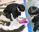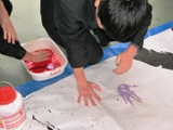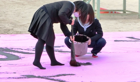美術部と書道部のみなさんが巨大フラッグづくりをしました。