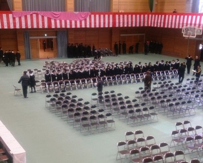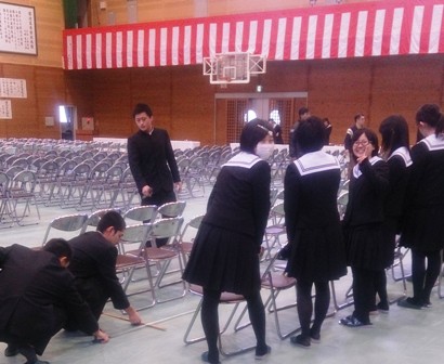 卒業式を明日に控え、午後から卒業式の予行を実施します。