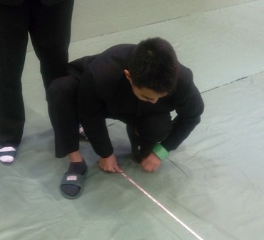 を会場全体に張り巡らせ、お祝いの気分が盛り上がってきました。1年生男子が