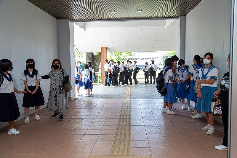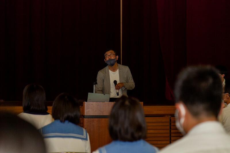 また、熊本大学熊本創生推進機構の工学部土木建築学科准教授の田中尚人先生と学生さんにもわざわざご来校いただき、「まちづくり部」の活動について生徒たちと一緒に発表していただき、本校が熊本大学との連携により学習活動を深めていることをPRしました。田中先生ご自身も高校の中学校への説明会で話をするのは初めてとのことで、かなりのインパクトがあったのではないかと思っています。