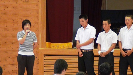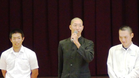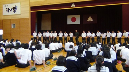 今年度初めての商業科集会は、野球部の功績を称える会です。