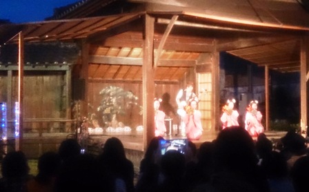 能場を中心に舞台づくりがなされ、周辺を竹灯りで演出します。