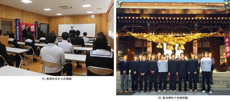 その後、生徒たちは菊池神社で合格祈願を行った後、記念撮影を実施し、本番に向け、気持ちを新たにしていました。