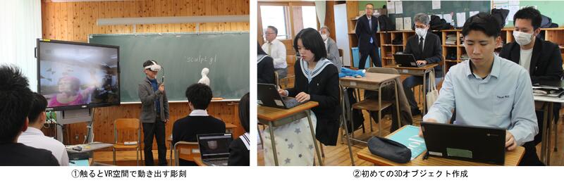 1限目では、崇城大学芸術学部の教育内容や、清島教授の研究内容についてご紹介いただき、3DやCG技術が社会でどのように活用されているのかを学びました。