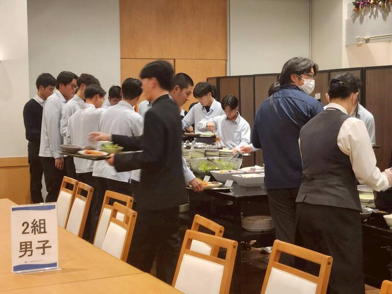 それぞれのコースで観光を楽しんだ後、ホテルへ到着しました。豪華なビュッフェを前にして、好きなものを好きなだけ食べた生徒は大満足でした。