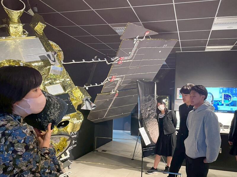 その後は、都内でクラス別研修を行いました。千葉工業大学東京スカイツリータウンキャンパスに到着したクラスは、ロボット展示や操縦体験などの最先端技術を体感しただけでなく、実物大の「はやぶさ2」の模型を見る機会もあったようです。