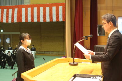成績優秀模範生徒表彰 普通科 今坂美結 商業科 豊田双葉