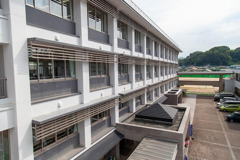 校舎も育友会が所有する森林「育友会林」の木をふんだんに活用した温かみ溢れる作りとなっており、屋上には庭園もあり、落ち着いて学習できる環境が整っています。学校すぐ近くの菊池公園には菊池市のシンボルである菊池武光公の騎馬像を見ることもでき、多くの生徒がその菊池公園のバス停を利用したり、前を通って登下校をしています。