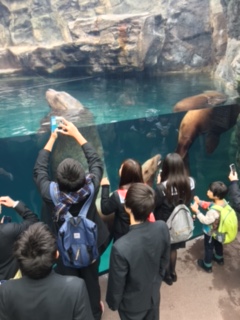 朝食はバイキング!!      アクアマリンふくしま        目の前を泳いでいく