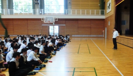 商業科の取組を皆で共有し、積極的・自主的な行動をとれるように集会で確認しました。