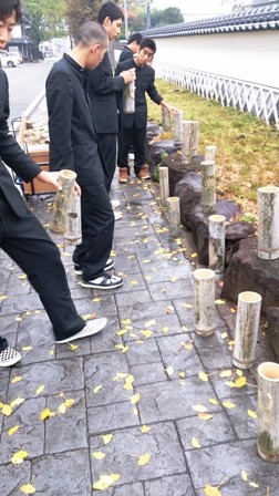 11月18日 ほの宵まつり初日に向けて竹灯籠を配置します。
