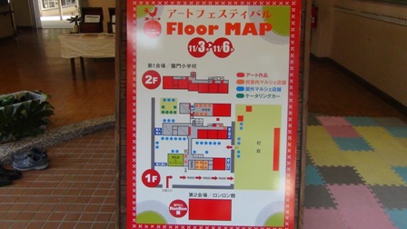 龍門小学校跡地がアート会場になっています。児童の靴箱がそのまま使われています。