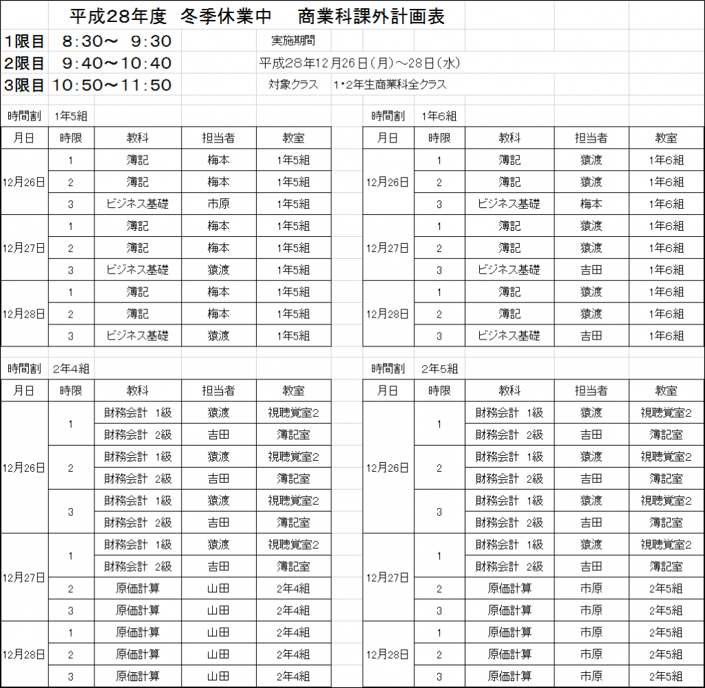 12月14日(水)5・6時限目 特別棟2階 簿記室