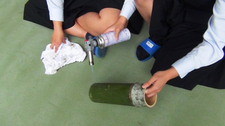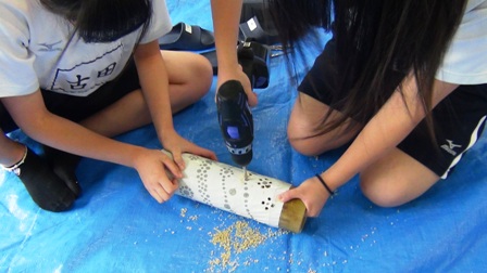 竹灯籠製作 ドリルで穴開け