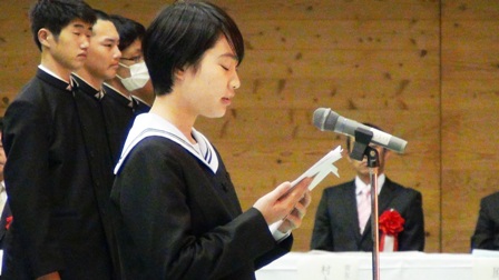 新入生代表として商業科の古田さんがあいさつしてくれました。