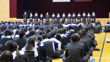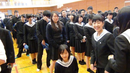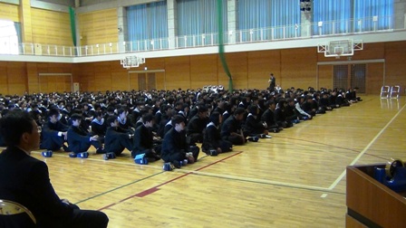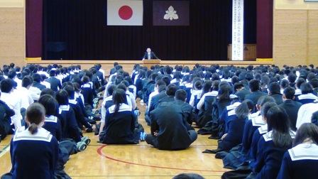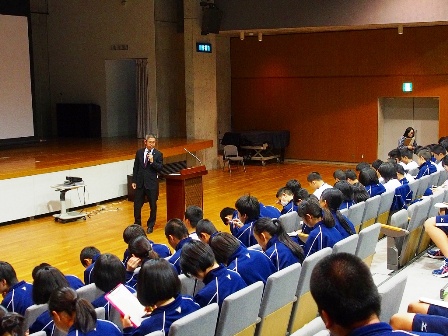 はじめての全校生徒での講演会です。少し緊張もあったようです。