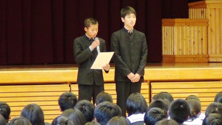 エコスクール委員長による学校版ISO宣言と「エコスクール日本一」に向けての取り組み紹介