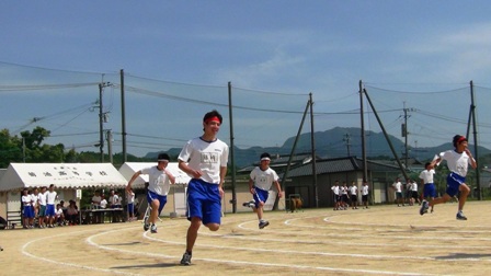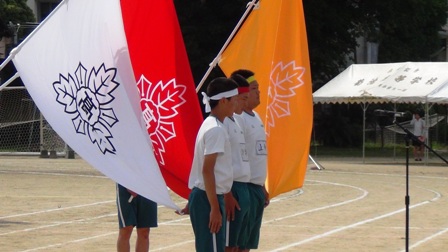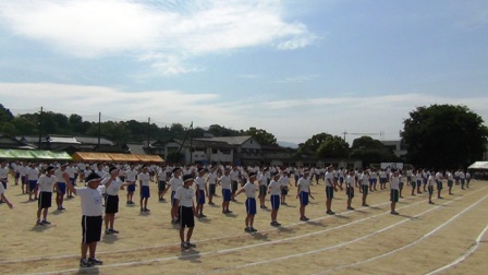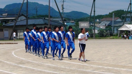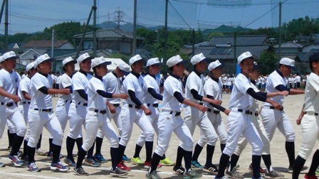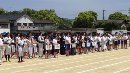 部活動生が行進し総体、総文祭、夏の大会に向けての意気込みを見せてくれました。