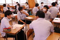 SST(ソーシャルスキルトレーニング)とは、 対人関係や集団行動を上手に営んでいくための技能(スキル)のことです。質問に対して自分のことをクラスメートに伝えたり、相手の考えをきちんと理解することを目的としています。今回の活動は「さいころトーク」。さいころの目ごとに「感動したこと」「自分の長所・自慢できること」…などのお題があり、4~5人のグループでそれを周りに話し、周りはしっかり聞くというものです。最初に「質問じゃんけん」でウォーミングアップをし、早速グループを作って活動開始。休校でやっと学校生活が送れるようになった1年生ですが、どの班も上手にグループワークができていました。話し上手、聞き上手になれたかな?