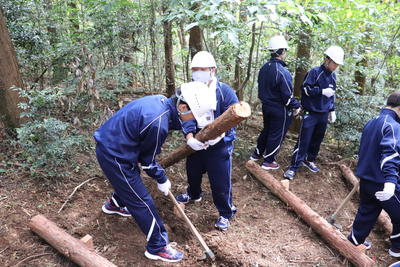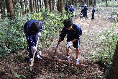 先日、育友会の皆さまが下草刈り作業をしてくださっていたので、生徒たちはスムーズに作業を進めることができました。