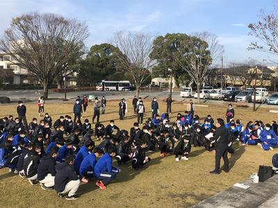 本校からは、剣道、野球、サッカー、男子バレー、女子バレー、ボクシング、ソフトテニス、生徒会、参加希望者の約100名、先生方24名が参加いたしました。
