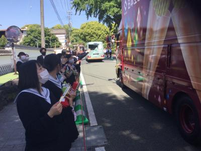 5月6日(木)5限目の時間に菊池市を通過する聖火リレーを観戦いたしました。