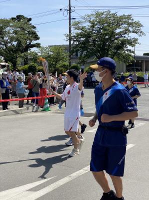 コースは、菊池市役所前のキクロスをスタートし、ふるさと創生市民広場がゴールです。本校の正門前を通過することもあり、コロナ禍ではありましたが、生徒たちに「夢と希望を!」という校長先生の熱い思いもあり、感染防止、マナーの徹底をしっかりと指導し、観戦いたしました。生徒たちも大変喜んでおり、久しぶりに明るい笑顔がたくさん見られました。本校の正門前は、トーチリレーが行われその瞬間も観ることができました。