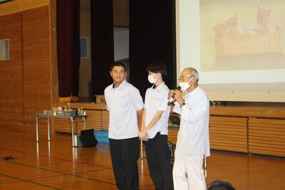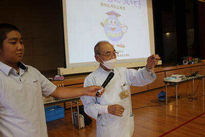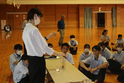 実験も交えてのお話ということもあり、体育館で対面で話をしていただきました。