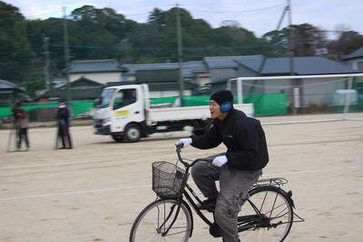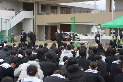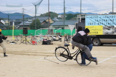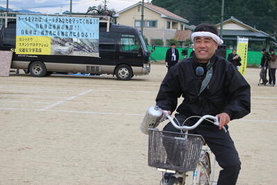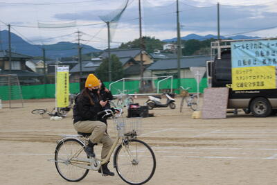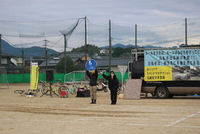 本日の6限目終了後に、本校グランドにて「スタントマンによる自転車交通安全教室」が実施されました。