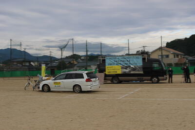 シャドウというスタントプロダクションの方々が、実際に起こった交通事故を生徒たちの目の前で演じてくださいました。
