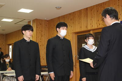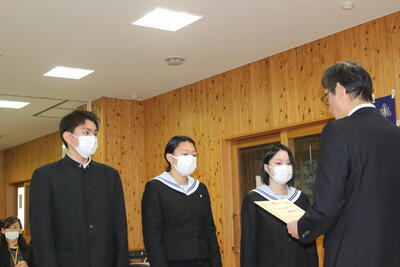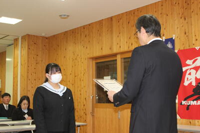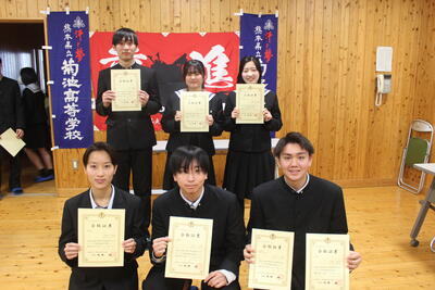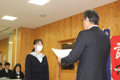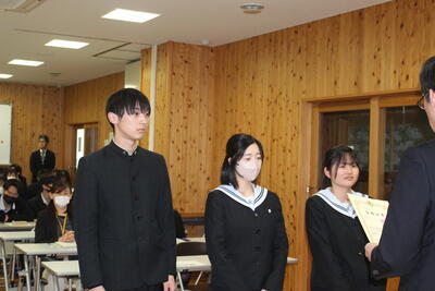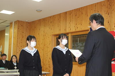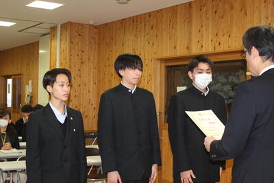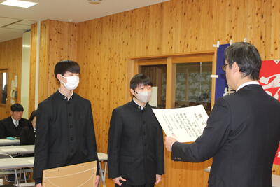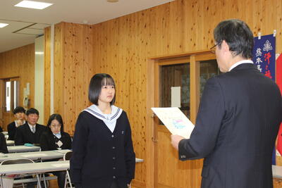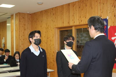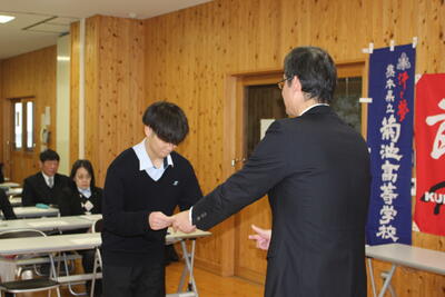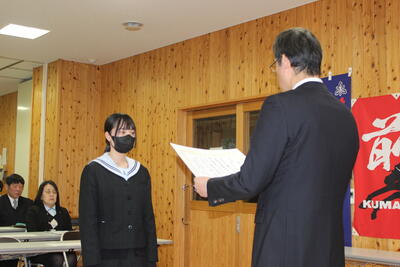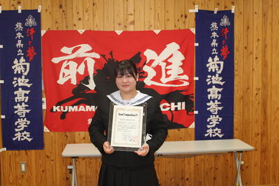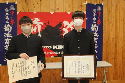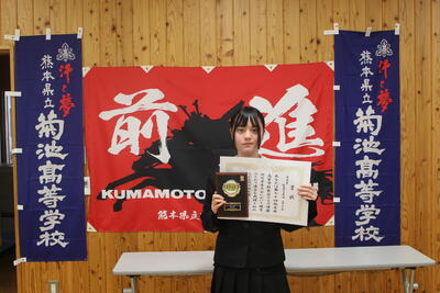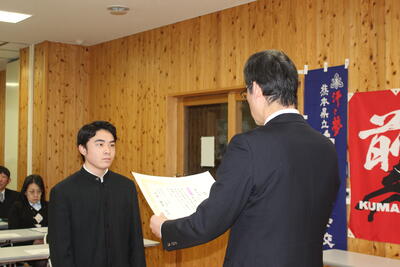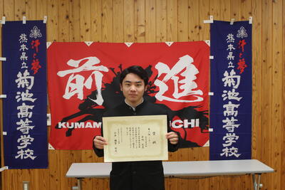 菊池白龍まつりへの感謝状 代表2年 右田拓夢