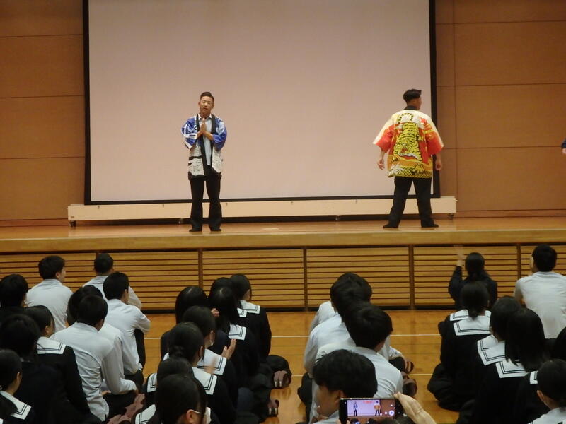 講演の中では、「何か行動を起こすときに支えになるのは、高校時代の仲間である」という言葉や、本校校訓である「汗と夢」に触れ、ハチドリの一滴の例えを用いて、「一見無駄に見える努力の中にこそ意味がある」というメッセージを生徒たちに届けてくださいました。