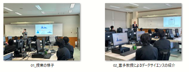 また、喜多教授からは、データサイエンスとはどのような学問なのか、大学ではどのようなデータを扱い、社会の課題解決にどのように活用しているのかについても紹介していただき、生徒にとって学びの視野が広がる貴重な機会となりました。