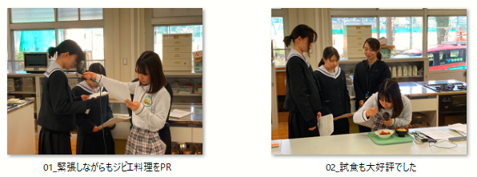 1月28日、本校家庭科室にて「第5回くまもとジビエ甲子園」に向けたRKKラジオ番組(大田黒浩一のきょうも元気!)の取材が行われました。生徒たちはこの日のために試作を重ねた「猪肉のおひめさんだご汁」と「鹿肉とトマトの洋風煮込み」を、ミミー号の川原キャスターに試食とレポートをしていただきました。生徒たちは緊張しながらも、料理へのこだわりを自分の言葉で伝えていました。試食後には、両作品とも「完売間違いなし」と太鼓判をいただき、生徒たちもほっとした様子でした。本番は2月7日(土)10:30~、熊本市・花畑広場で開催されます。各メニュー限定150食。菊高生渾身の一皿を、ぜひ会場でご賞味ください。