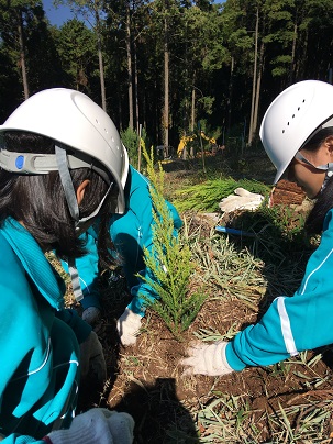 地域の森で学ぶ 1年生「育友会林」体験学習 ー植樹&ベンチ制作に挑戦ー