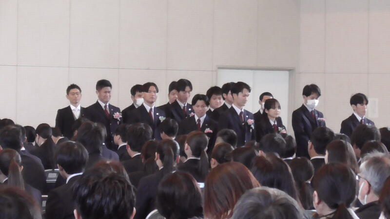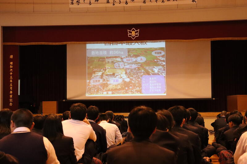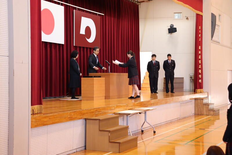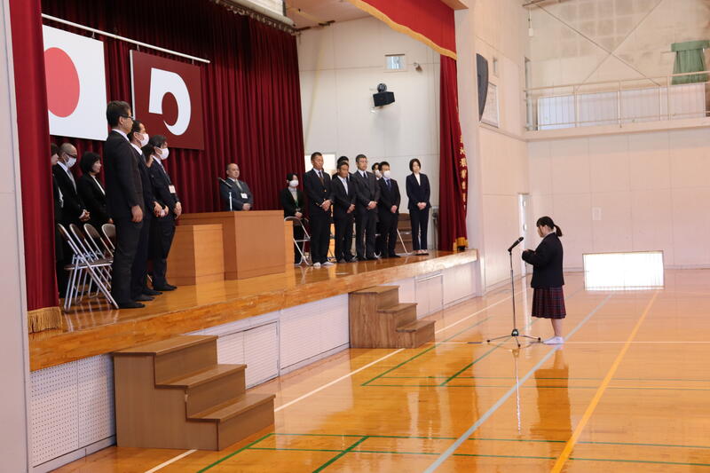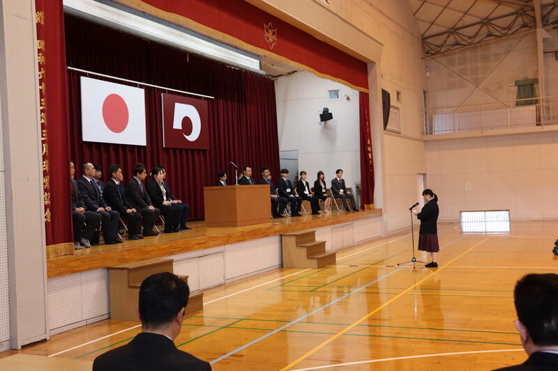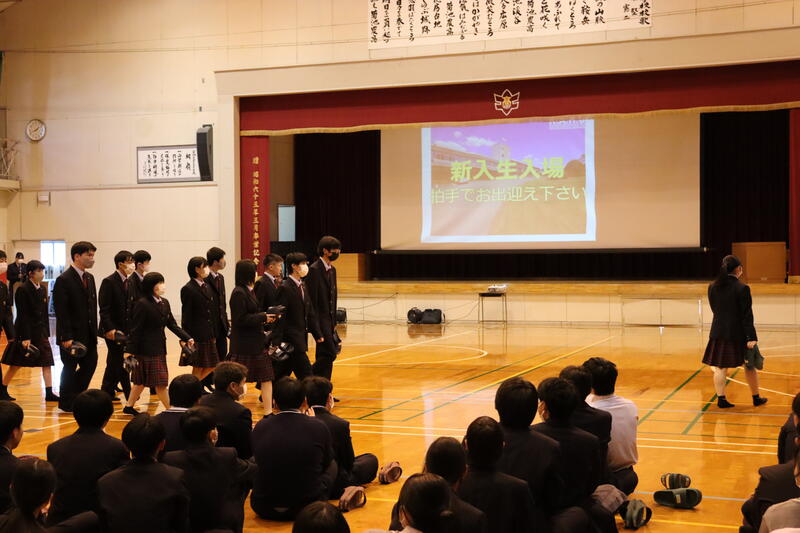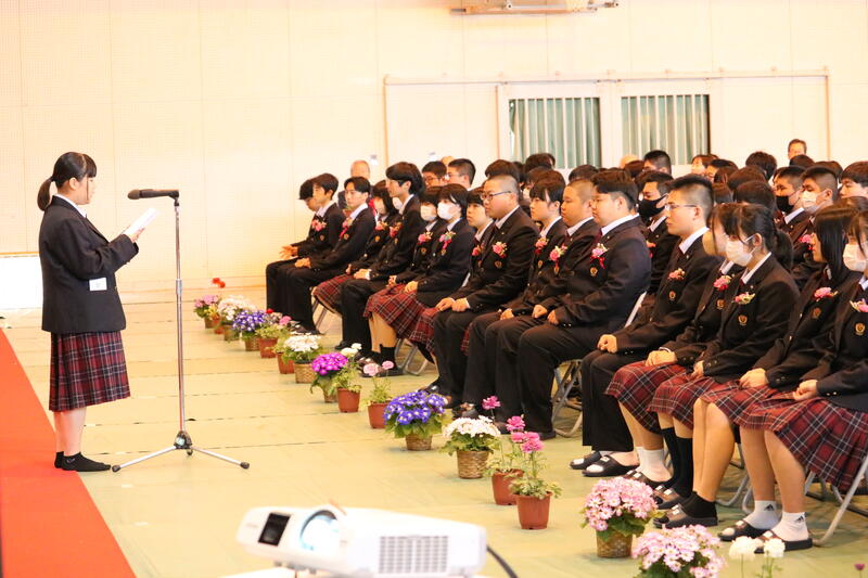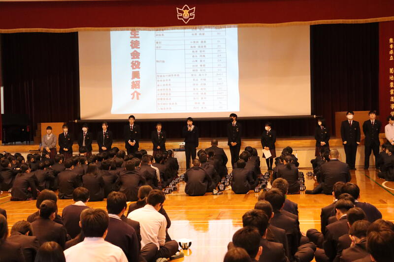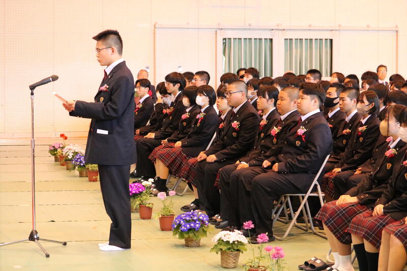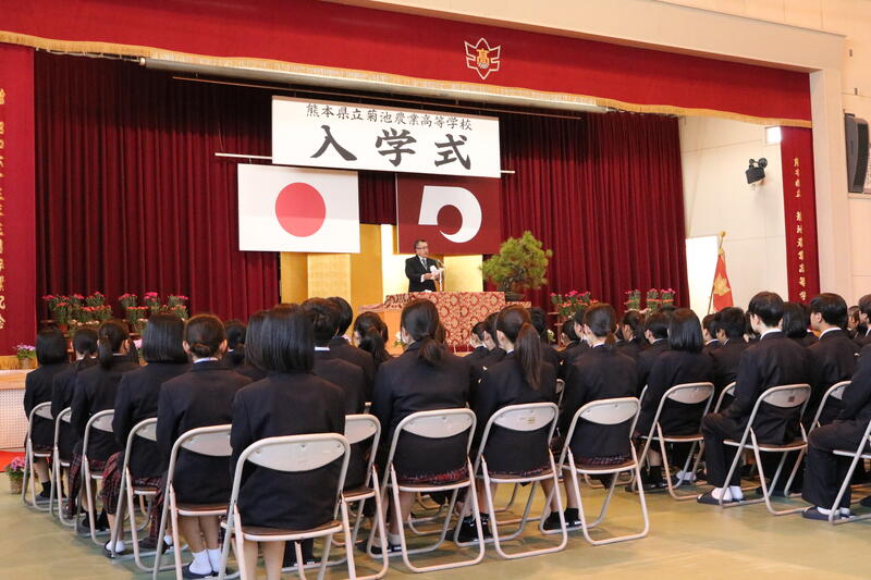 続いて、新入生総代が菊農での学校生活に対する期待や抱負を力強く述べ、生徒会長からは新入生を温かく迎える歓迎の挨拶がありました。