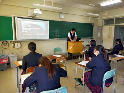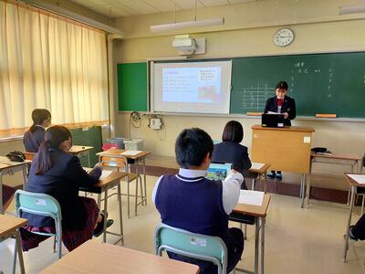 7月17日(水)に、今年度熊本県立大学に内地留学している本校の津田教諭が「エシカル消費教育」について、2年生各クラスで授業を行いました。