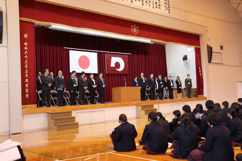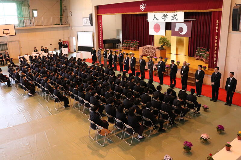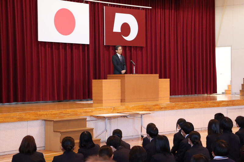 はじめに新入生の入学が許可された後、校長先生より「明日に向かって前向きに生きる」ことへの願いが込められた式辞がありました。来賓の方からは、夢の実現に向けて努力するよう励ましの言葉が贈られました。