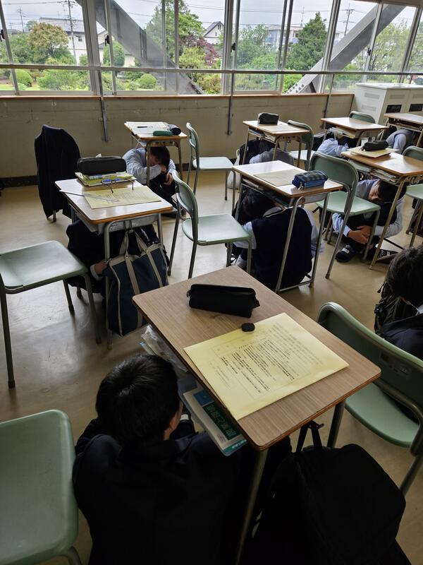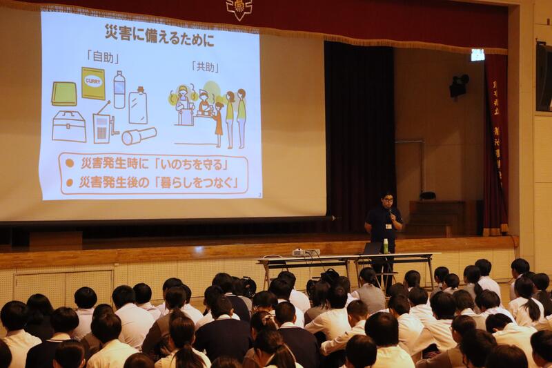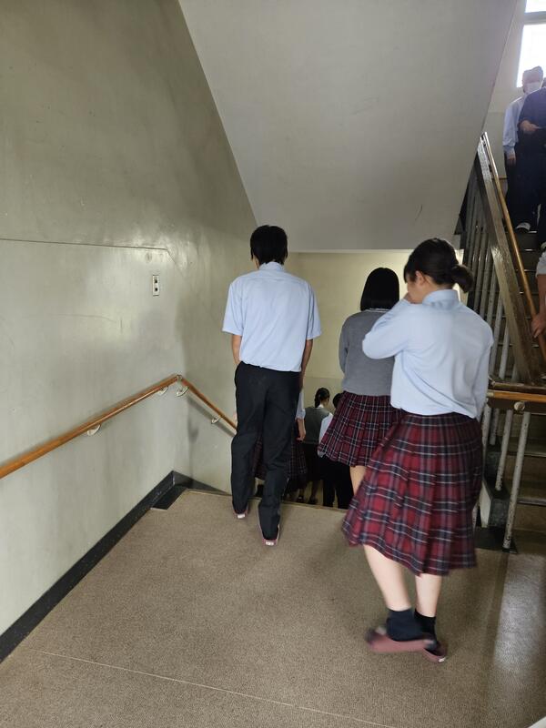 訓練では地震発生から4分37秒で全校生徒が体育館に避難できました。落ち着いて迅速な行動が取れました。校長先生から2016年の熊本地震や今年の能登半島地震についてのお話があり、日ごろから備えることや自助と共助を意識した行動を取れるようこの機会に考えることの大切さが伝えられました。いつどこで災害が起きても最善の行動が取れるよう今後も考えていきたいです。