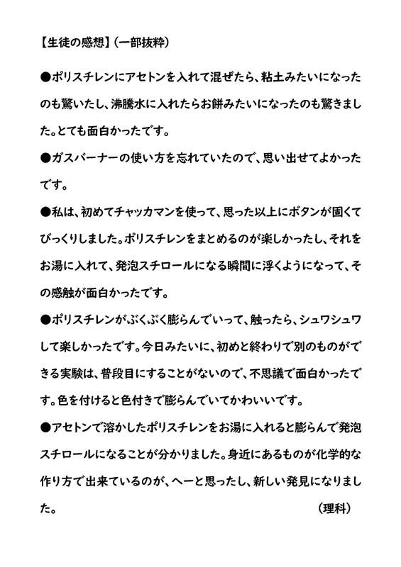 理科 R7 プラスチックの性質② ポリスチレンから発泡スチロールをつくる実験