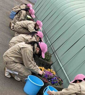 大変な労力ですが、多くのきれいな花で迎えられる生活文化科でありたいと思っています。