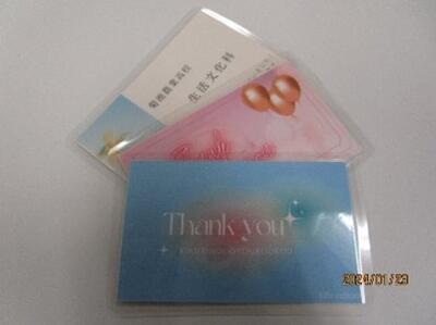 私たち3年生活文化科被服専攻生は、授業の中で、本校へ来校されるお客様へのお礼のメッセージカードを作成しました。私たちの育てた草花を買いに来て下さったお客様へ感謝の気持ちを表したものです。メッセージカードは、6種類あります。