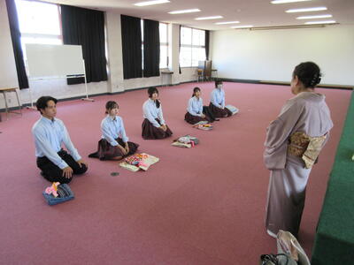 9月10日(水)5・6限目 専攻の時間に、生活文化科 被服専攻生4名は、外部講師竹本先生のご指導の下、浴衣の着付けに挑戦しました。浴衣製作は、家庭科技術検定1級の題材で、事前に半身を仕上げ、検定で完成させました。検定には4名とも見事合格をすることができました。反物は、それぞれにあった色・柄のもので着付けを楽しみにしていました。自分で初めて着る浴衣は、難しかったのですが、先生のご指導できれいに着ることができました。日本の伝統的な衣服である和服の良さを改めて感じることができた時間でした。
