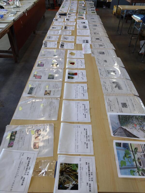 園芸科棟では農業鑑定校内大会に向けて、問題例や実物を展示しています。園芸科職員は生徒の知識向上、農業鑑定意欲向上のため、いろんな先生方の工夫した問題も見られます。