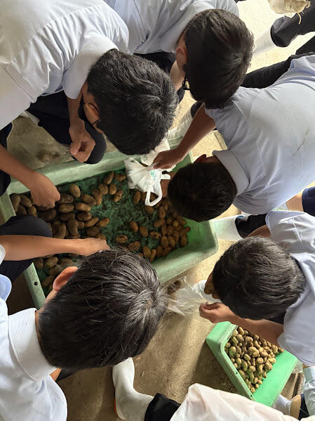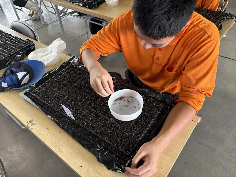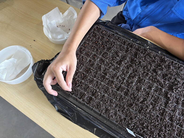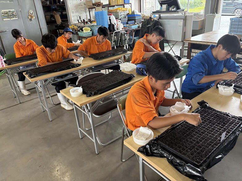 今日の実習では一つ一つ丁寧に播種を行いました。みんな真剣な表情で集中して取り組んでいますね!