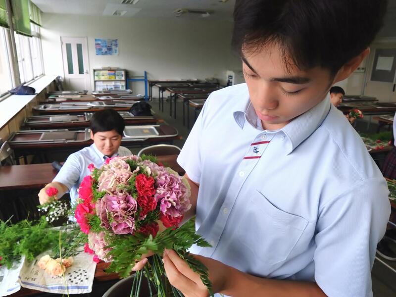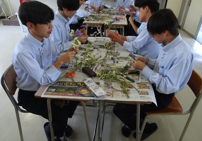 園芸科ではフラワー装飾の技能検定3級を受けるための講習会を授業で実施しています。
