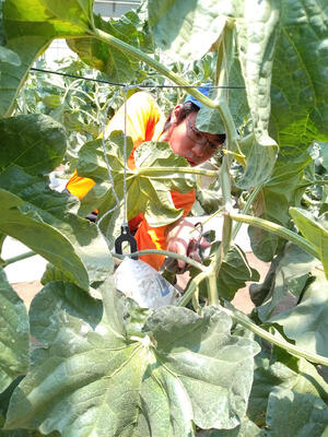 本日、2年新野菜専攻生でメロンの種まきをしました。1粒ずつ丁寧に播種しました。
