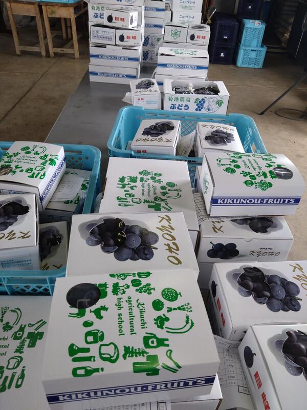 夏休み期間ではありますが、園芸科の生徒達は当番実習で学校に出てきて頑張っています。果樹園ではブドウの販売が始まり、今年もおいしいぶどうの収穫、調整、箱詰め、販売、接客をしています。広い果樹園のブドウの管理を頑張った成果が実り、多くのお客様にご購入いただくことが、生徒達にも達成感、満足感、喜びがあると思います。